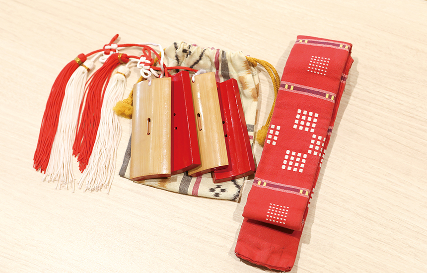 3歳の頃に習い始めた琉球舞踊の扇子と四つ竹。沖縄代表として県外だけでなく、国外へ遠征したこともあるんだそう。