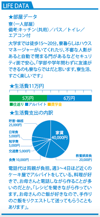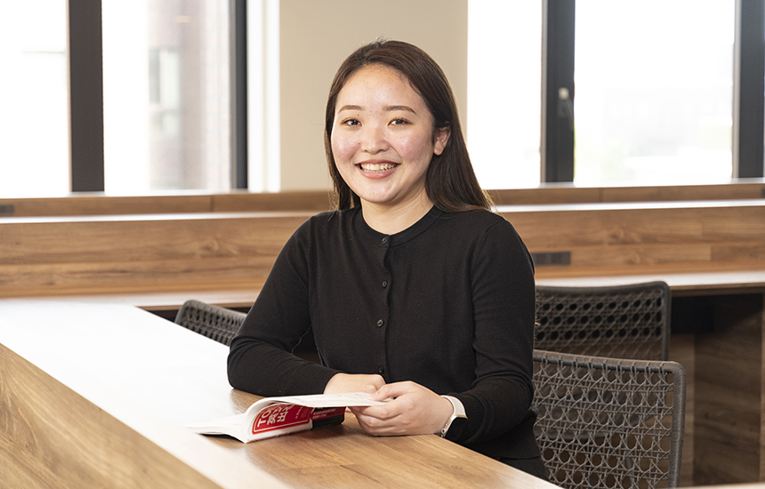 沖縄県立宮古高等学校出身。武庫川女子大学 文学部 英語文化学科(現:英語グローバル学科)3年生。「休みの日は梅田や神戸で遊ぶことが多いです。最近はマシになったけど、最初はずっと迷子でした(笑)」と兵庫での生活に慣れてきた様子をにこやかに話してくれた。