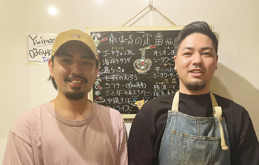 三軒茶屋と下北沢を結ぶ茶沢通り沿いのビルの地下にある「ゆいま~る食堂 三軒茶屋店」は、オーナーはじめスタッフの多くが沖縄出身。「元々沖縄出身者で始めたお店なんですよ」と話すのは、店長の伊藝さんだ。沖縄市出身で、この店に勤めて5年目になる。以前は山梨県で和食の料理人をしていたそうだ。三軒茶屋は沖縄出身者が多く、同店に沖縄出身の芸能人が来店することもあるそう。現在バイトを募集中で、一緒に働いてくれる沖縄出身の学生さんにぜひ来てほしいとのこと。また、来店の際に本誌を見たことを伝えた場合には、ブルーシールアイスをプレゼントしてくれるそうだ。
